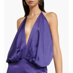 Emulate Blumarine’s runway look by styling this slouchy minidress with thigh-high red stockings. Made from shiny satin, this halterneck design fits loose through the bodice before becoming more fitted through the legs.