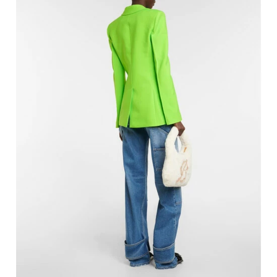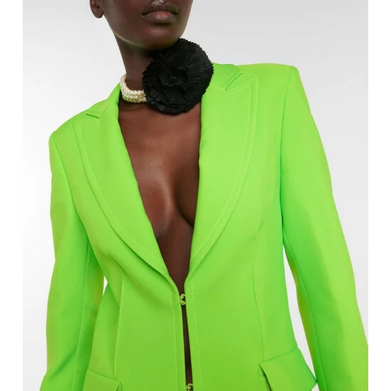 Brighten up your wardrobe with this bold crêpe blazer from Blumarine. The neon green style has a fitted single-breasted silhouette, peak lapels, and hook-and-eye closures.