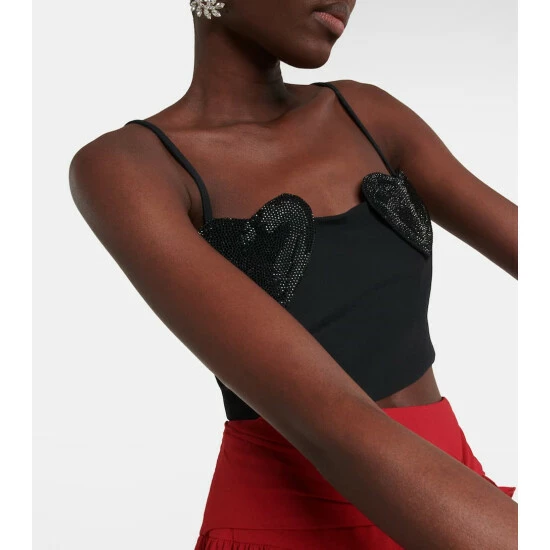 Look to this cropped top from Blumarine for a playful addition to your party edit. Held up by spaghetti straps, the style is adorned with two crystal-embellished heart appliqués at the neckline for a touch of sparkle.