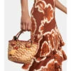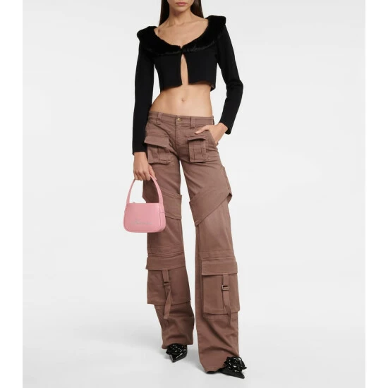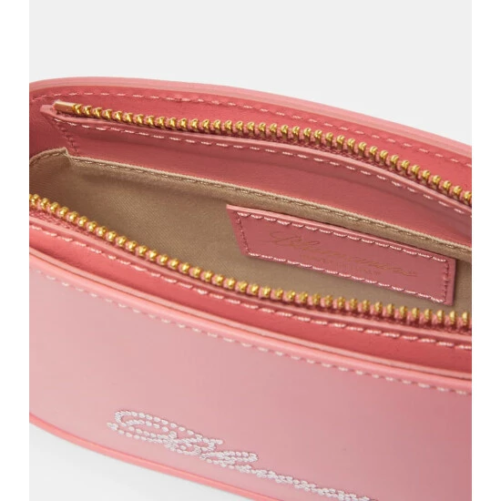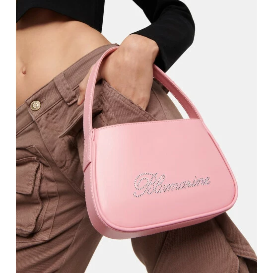 Blumarine is synonymous with a modern interpretation of noughties styling. This leather bag is detailed with a cursive embellished logo on the face and a rounded silhouette with twin top handles.