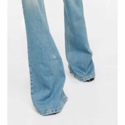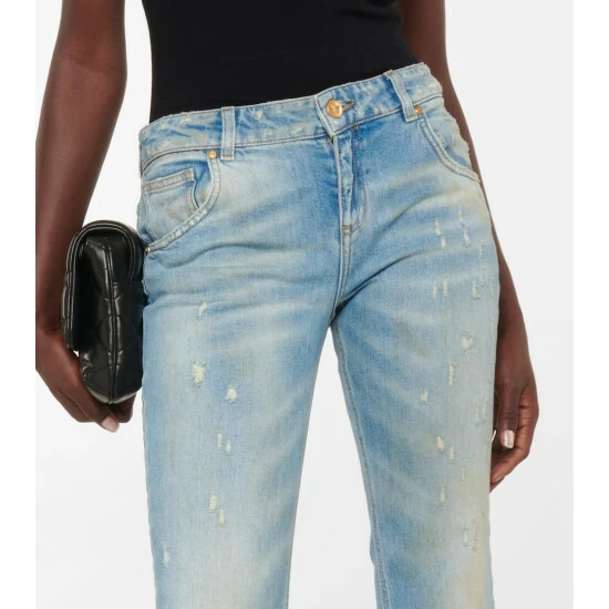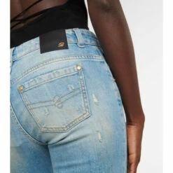 Blumarine gently distressed these jeans along the faded thighs. They’re made from stretchy cotton denim in a light-blue wash and feature a mid-rise waist and ultra-flared legs.