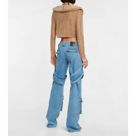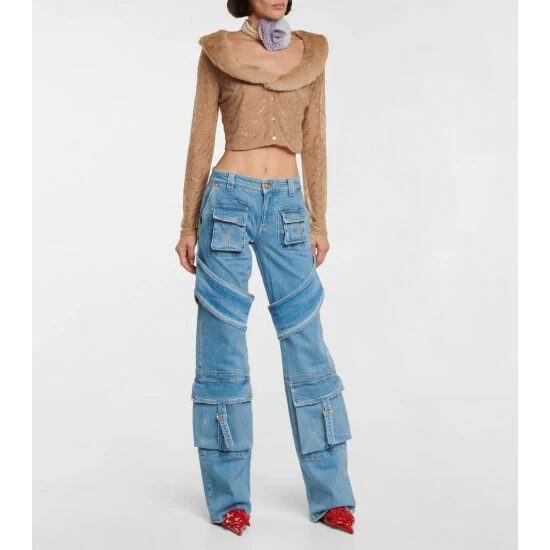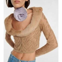 Blumarine channels a vintage look with this cropped cardigan. Trimmed with a detachable faux-fur collar, it’s made from sheer mesh and stitched with rhinestones in the shape of cursive logo lettering.