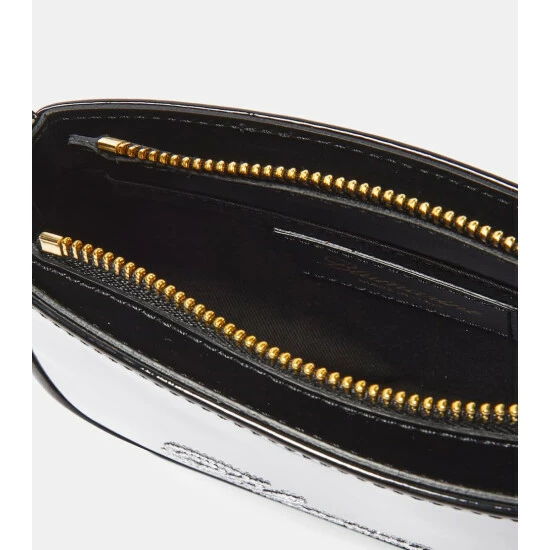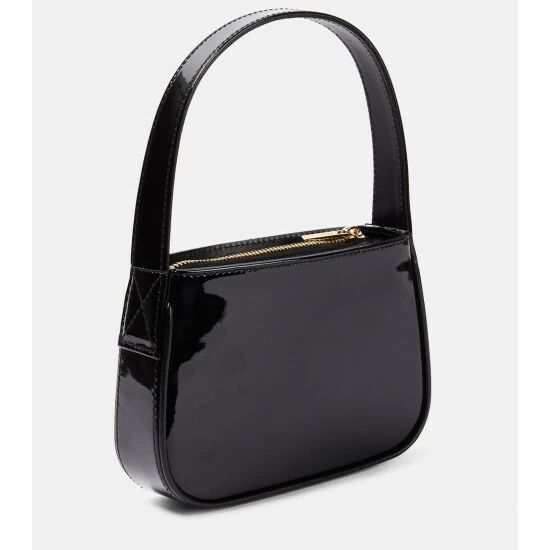 Embrace Blumarine’s 2000s-inspired aesthetic with this glossy shoulder bag. Made from patent leather, it has a structured silhouette and dainty crystal embellishments that spell out the brand’s name.