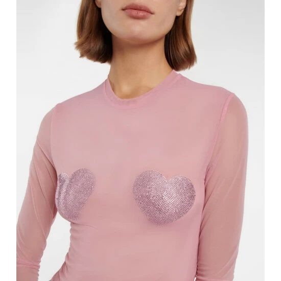 With strategically-placed heart embellishments, this semi-sheer top from Blumarine is perfect for your next night out. The rosy-hued design is cut into a slim fit and the sheer inner lining adds an extra layer of coverage.