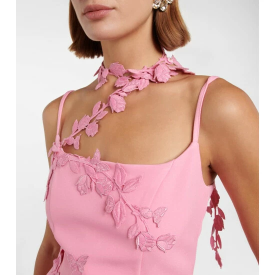 Blumarine puts a whimsical spin on the classic slip minidress with its signature butterfly embroidery. The spaghetti-strap design is adorned with tonal macramé leaves and roses and has a darted waist for a fitted silhouette.