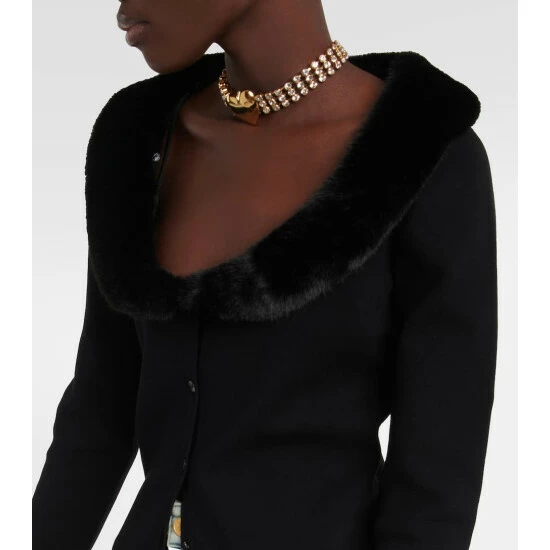 Featuring a faux fur collar, this cardigan from Blumarine has a buttoned front and a monogram logo plaque.