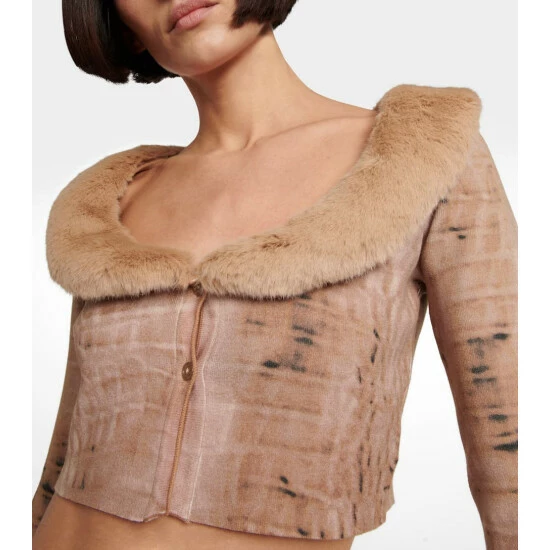 This cardigan from Blumarine is trimmed with a faux fur collar that lends a tactile feel. The cropped silhouette is made from a compact knit with two buttons in front.
