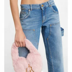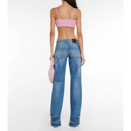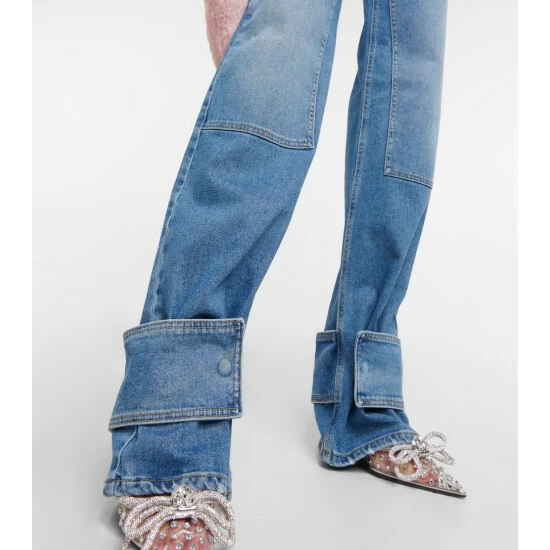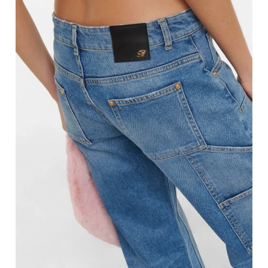 Denim, but different: these jeans from Blumarine are finished with elongating panels at the thighs and half-belted cuffs. They’re designed for a mid-rise fit and have flared legs.