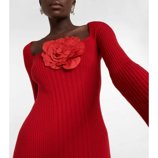 This Blumarine midi dress is embellished with a rose appliqué in a romantic twist. The close-fitting design is made from a silk-blend ribbed-knit with a squared neckline.