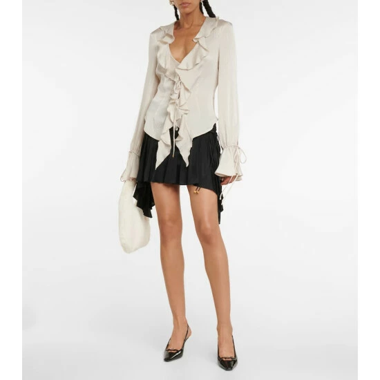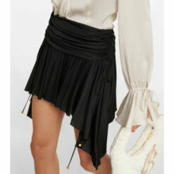 This miniskirt from Blumarine is made from supple viscose jersey. It has a tie-trimmed ruched waistband and a handkerchief hem.