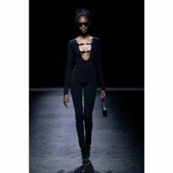 Straight off the runway, the Jessie crêpe jumpsuit from Bluemarine defines the houses’ codes. Both glamorous and versatile, it features a deep V-neck accented with crystal-embellished buckle fastenings and has a slim-fitting silhouette.