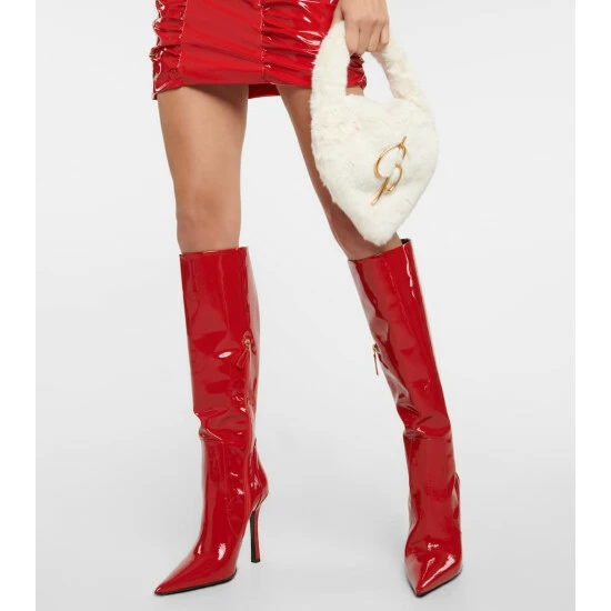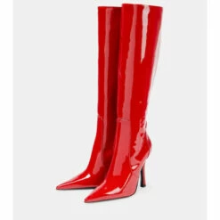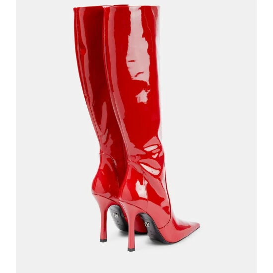 Turn heads in these glossy knee-high boots from Blumarine. They’re made from fiery red patent leather and are finished with a pointed toe and stiletto heel for extra allure.