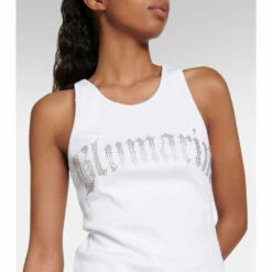 Satisfy your craving for the perfect wardrobe essential with this tank top from Blumarine. This piece is made from cotton and features a rhinestone-embellished logo print.