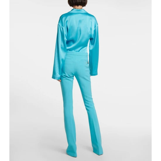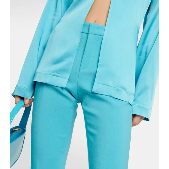 With these pants, Blumaine offers a contemporary take on classic tailoring. The mid-rise design has slit pockets, a concealed zipper fly, and slim legs that flare out below the knees.