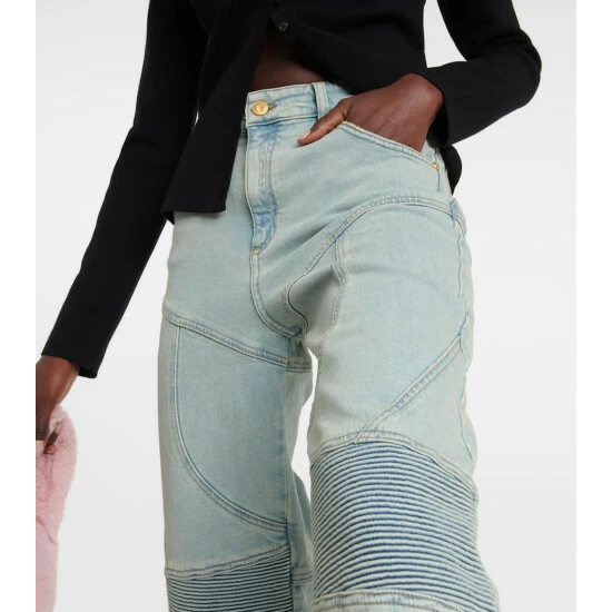 Add a contemporary design into your denim edit with these paneled high-rise wide jeans from Blumarine. Made from a cotton-blend light-wash denim, this style breaks up the leg with visually interesting curvy seam details.