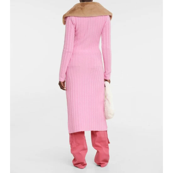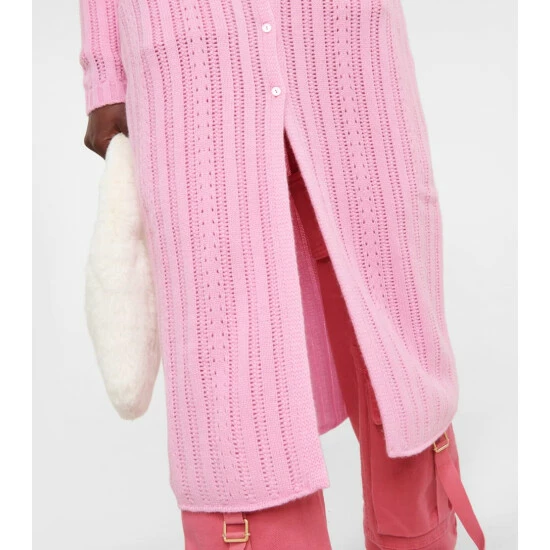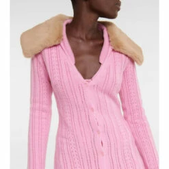 Blumarine’s Pointelle cardigan is knitted from soft wool and cashmere yarns into a long silhouette with a V-neckline and a faux fur collar for a touch of glamour.