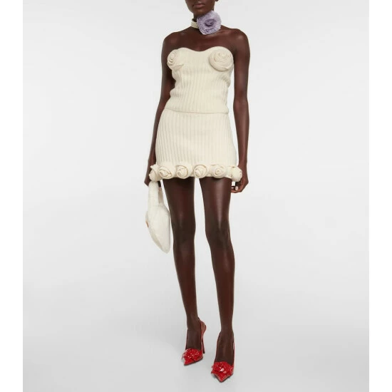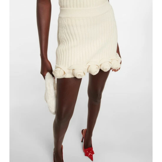 Blumarine adds sweet dimension to this miniskirt with hand-applied knit roses along the hem. Made entirely from wool, the ribbed design has a low-rise and elasticated waistband.