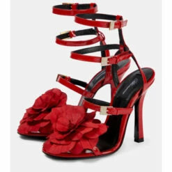 The rose detail on these sandals from Blumarine gives them a romantic touch. Crafted from red patent leather, the cage-like straps on this style are finished with crystal-embellished buckles that sparkle with every step.