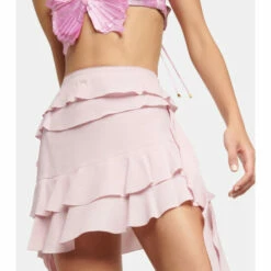 This crêpe miniskirt from Blumarine is constructed from delicately ruffled layers of baby pink fabric and features an asymmetric hemline.