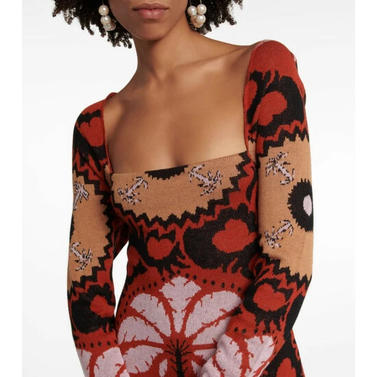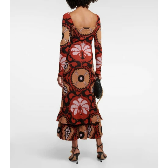 Inspired by the brand’s Colombian roots, Johanna Ortiz’s Artful Dream midi dress is defined by a bold, abstract, jacquard-woven pattern. Made from pure, soft cotton, it’s shaped with a square neckline and tiered, ruffled hemline.