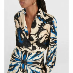 Vibrant pattern is Johanna Ortiz’s area of expertise, as demonstrated by the Blurred Reality dress. Made in the brand’s native Colombia, this psychedelic piece is shaped with an open V-neck and voluminous long sleeves.