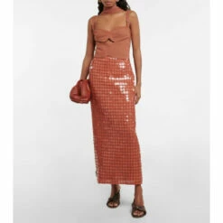 This maxi dress from Johanna Ortiz is made from crêpe that’s detailed with tonal stitching and embellished with square-shaped discs. It has a bustier bodice comes with removable straps and a matching feather-trimmed scarf.