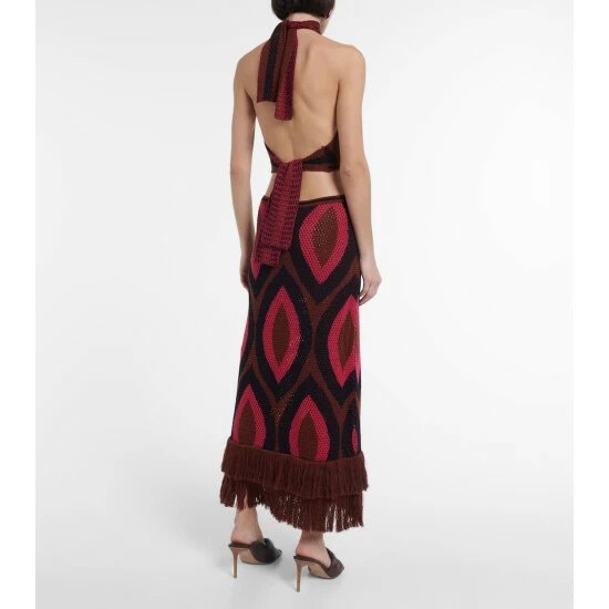 Imagine moonlit walks on the beach in this maxi dress from Johanna Ortiz. Romantic and alluring, this piece features cutouts at either side of the waistline and fringed detailing at the bottom of the skirt.