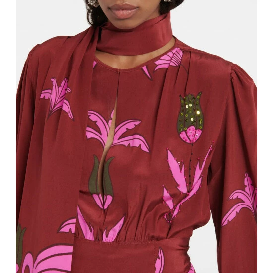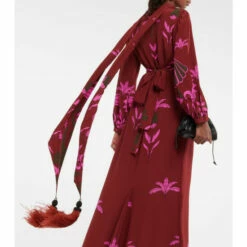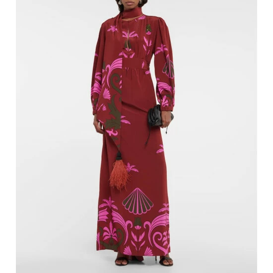 Johanna Ortiz creates pieces that appeal to your inner explorer. Made from printed silk, the Galactic maxi dress has a tunic silhouette and a scarf that’s trimmed with feathers.