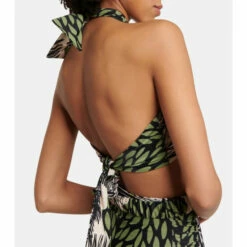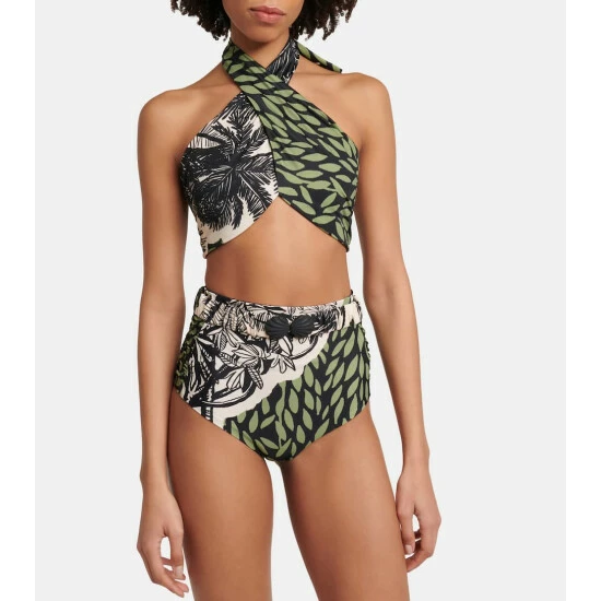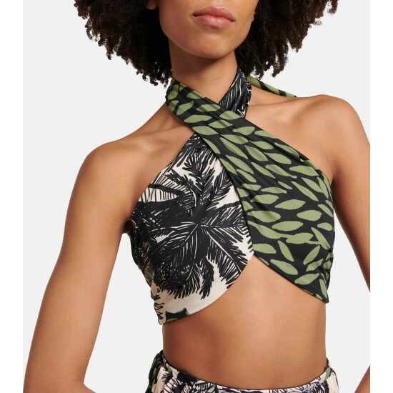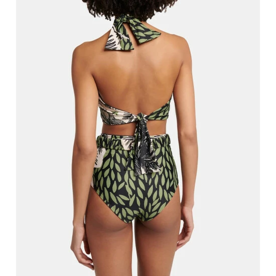 Hit the beach or the pool in style with this halter bikini top from Johanna Ortiz. Printed with a calming nature-inspired pattern, you’ll feel relaxed from day until night in this piece.