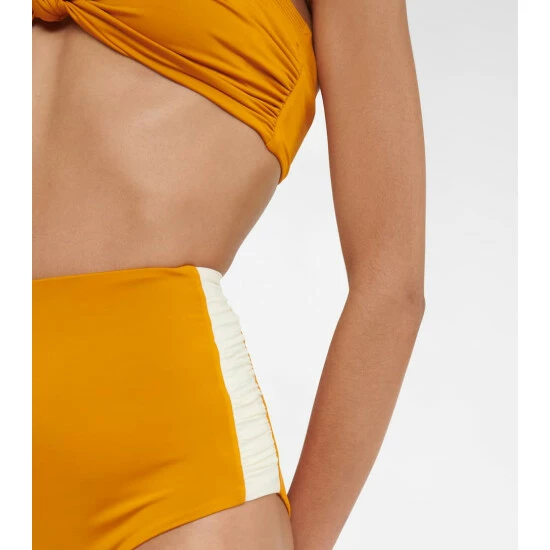 Johanna Ortiz’s Luna Nueva bikini bottoms are paneled with ruched inserts at the sides for a romantic finish. They have a high-rise silhouette for full coverage. Don’t miss the matching top in our edit.