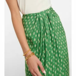 The Merecumbé maxi skirt from Johanna Ortiz features an all-over palm tree print. It’s also flecked with metallic fibers and has an elegant draped silhouette.