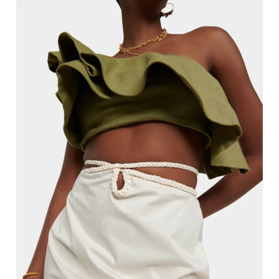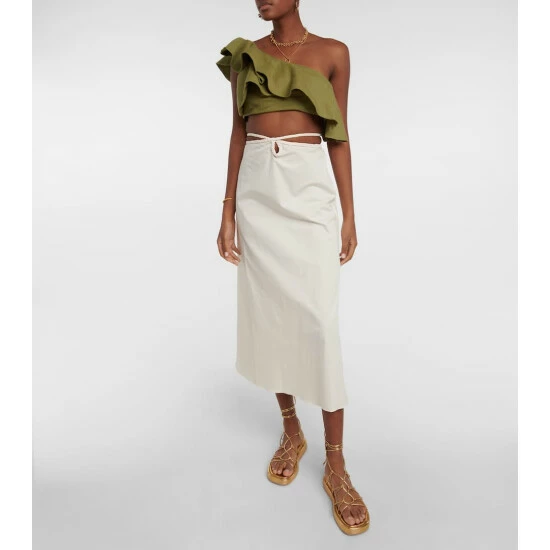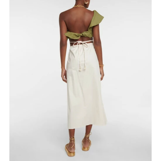 Johanna Ortiz’s Mother Nature midi skirt is defined by a braided strap detail at the waist. It’s made from a stretchy cotton-blend poplin and has a full, flared shape.