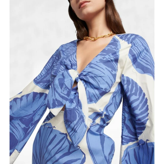The Polinesia Occidental dress from Johanna Ortiz is perfect for summer parties or weddings. Made from pure cotton, it has a charming seashell-inspired pattern, wide sleeves, and a cutout at the front.