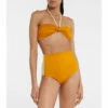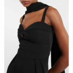 The Powerful Whispers jumpsuit spotlights Johanna Ortiz’s focus on modern femininity. Made in the label’s native Colombia, the sleek bandeau one-piece has a matching feather-trimmed scarf that drapes languidly over the shoulders.