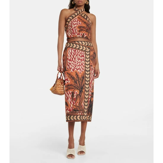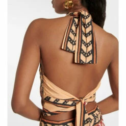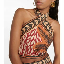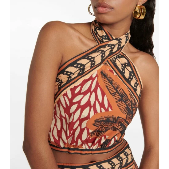 This crop top from Johanna Ortiz’s latest collection is a resort wear essential. Inspired by the tropical climes of her native Colombia, this printed linen top features a halter neck and self-tie back.