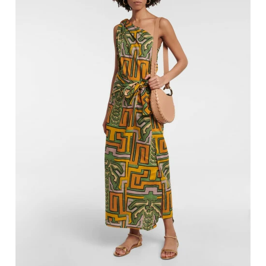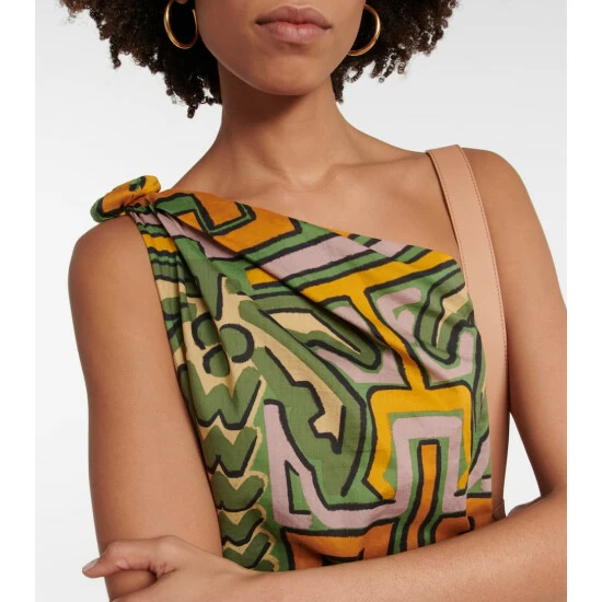 Build your vacation wardrobe around this printed midi dress from Johanna Ortiz. Bursting with color, this style boasts a flattering one-shoulder silhouette and is made from breezy cotton.