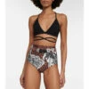 A signature Johanna Ortiz silhouette, this one-piece swimsuit has a plunge neck framed by dramatic ruffles. It’s made from lustrous swim jersey with intricate topstitching and high-cut legs.