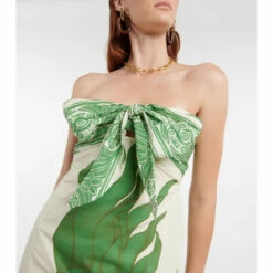 Johanna Ortiz’s Seagrass maxi dress is printed with algae motifs that showcase the brand’s love for the natural world. It’s made from cotton and has a halterneck that doubles as a self-tie at the front.