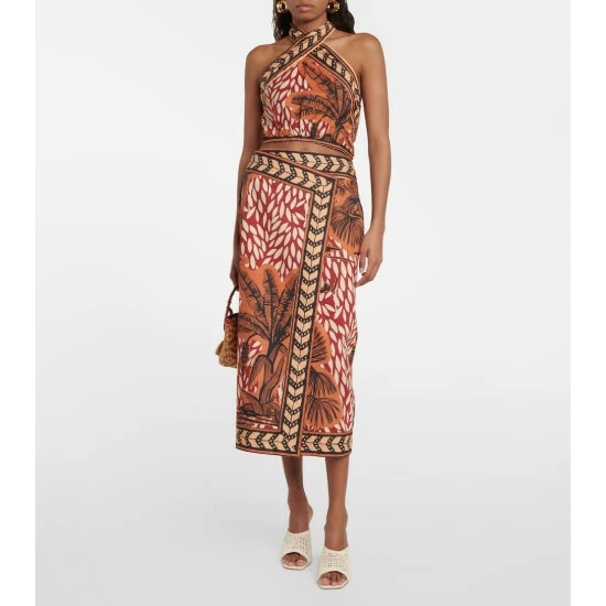 Embrace the bohemian flair of Johanna Ortiz’s designs in the Wild Path midi skirt. Made from lightweight cotton with a label-signature palm print, it features a dropped wrap front for optimal easy styling.